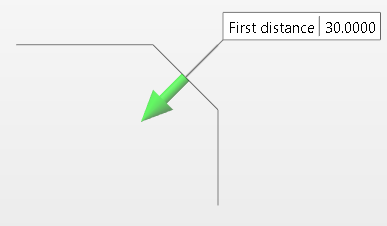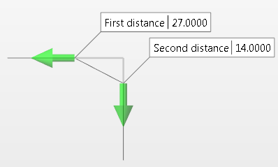 You can define the First and Second distance values using the input fields in the Graphic Area or the dialog box. Alternatively, you can press the left mouse button on either of the two arrows and drag in either direction. The value changes dynamically in the corresponding field. |